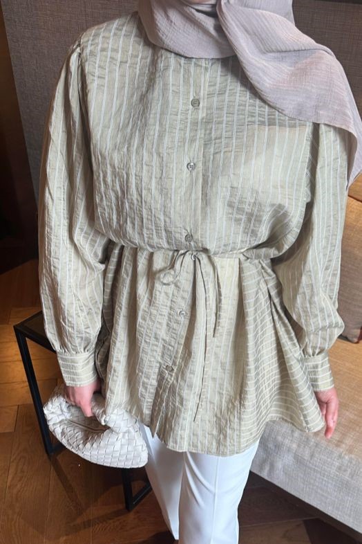 Şıklığı ve konforu bir araya getiren Emily Çizgili Gömlek modern çizgili deseni ve soft rengiyle tarzınıza doğal bir şıklık katıyor. Nefes alan kumaşı sayesinde gün boyu rahatlık sunarken, çağla yeşilinin zarif tonuyla hem günlük kombinlerde hem de ofis şıklığında kolayca kullanılabilir. Rahat kalıbı, hafif yapısı ve zamansız tasarımıyla dolabınızda uzun yıllar severek tercih edebileceğiniz parçalar arasında yer alacak. Jean, etek ya da kumaş pantolonlarla kolayca kombinlenebilir.