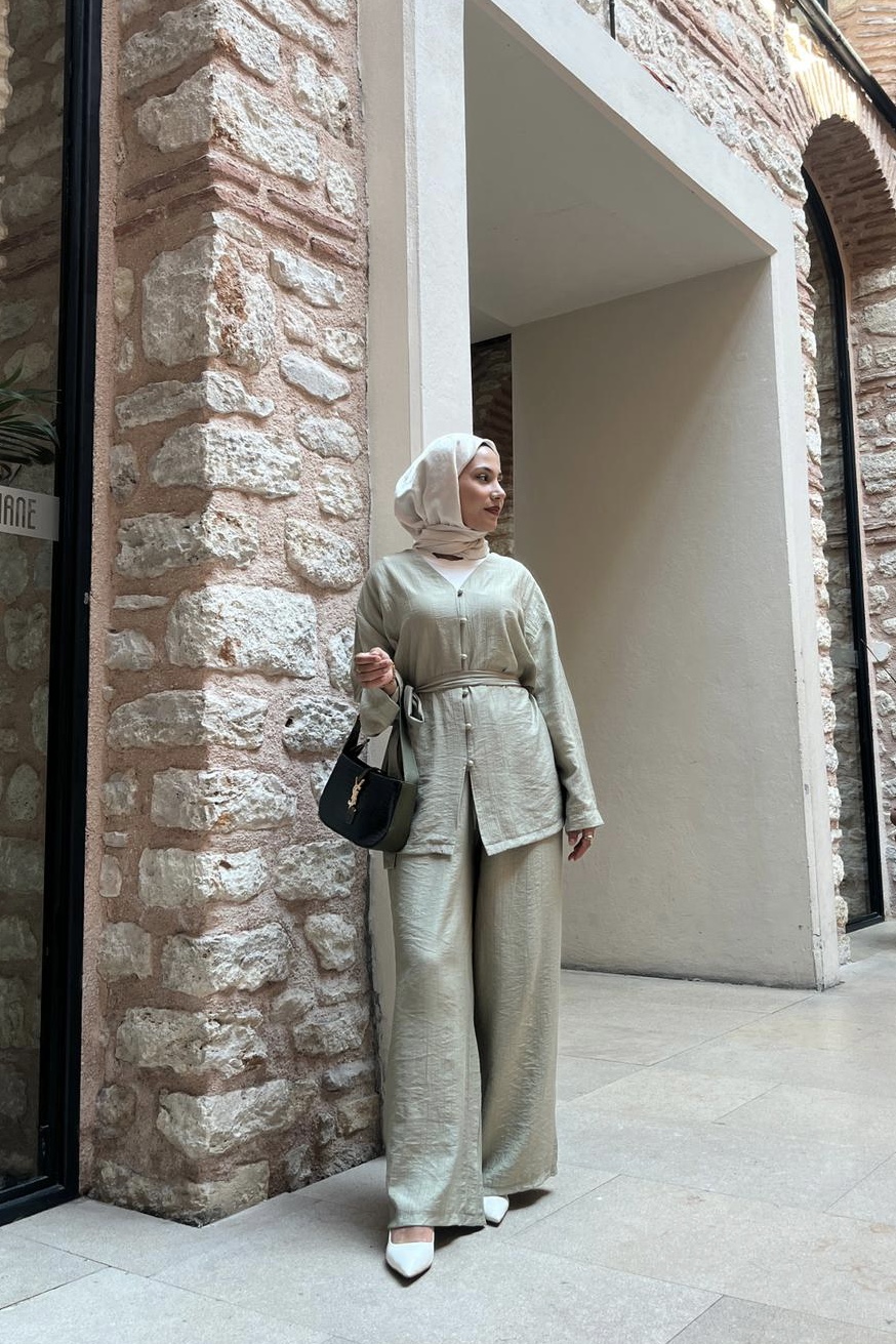 Geleneksel kimono zarafetini modern tasarımla birleştiren Kuşaklı Kimono Takımı, rahatlığı ve şıklığı bir arada sunar. Geniş kesimi ve dökümlü yapısıyla, vücuda nazikçe oturan bu takım, günün her saati stil sahibi olmanızı sağlar. Takım, zarif bir kimono üst ve rahat bir alt parça ile mükemmel bir uyum içinde tasarlanmıştır. Dışarıda bir kahve molası ya da akşam yemeği için ideal olan bu takım, özel davetlerde de fark yaratmanızı sağlar. Kuşak detayı, vücut hatlarını nazikçe vurgular ve kombininize şıklık katar. Ipek, saten veya pamuklu kumaş seçenekleriyle her mevsime uygun bir kullanım sunar.