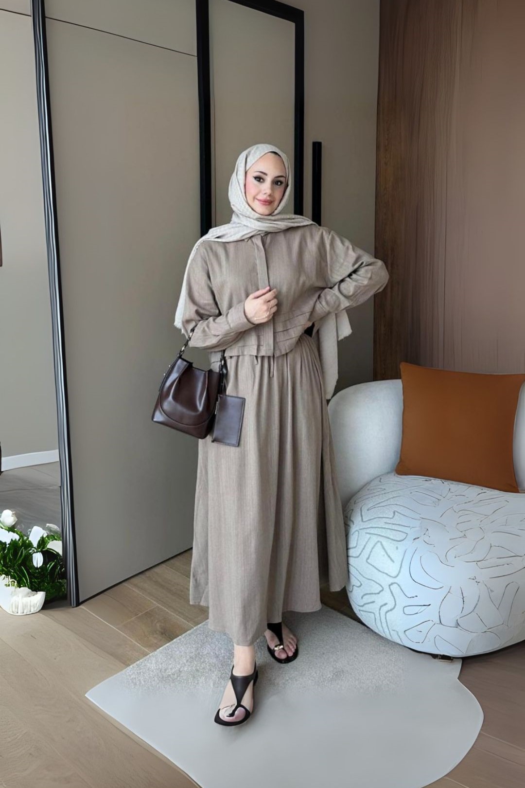 Zarif tasarımıyla dikkat çeken Nez Etekli Takım, gün boyu hem rahatlığı hem de şıklığı garanti ediyor. Kumaş dokusu sayesinde nefes alabilir ve konforlu kullanım sunarken, modern kesimiyle zamansız bir stil oluşturur. Günlük kombinlerden özel davetlere kadar her ortamda tercih edebileceğiniz bu takım, zarif görünümüyle dolabınızın kurtarıcı parçalarından biri olacak. Hem etek hem de üst tasarımındaki uyum, feminen ve sofistike bir duruş kazandırır.